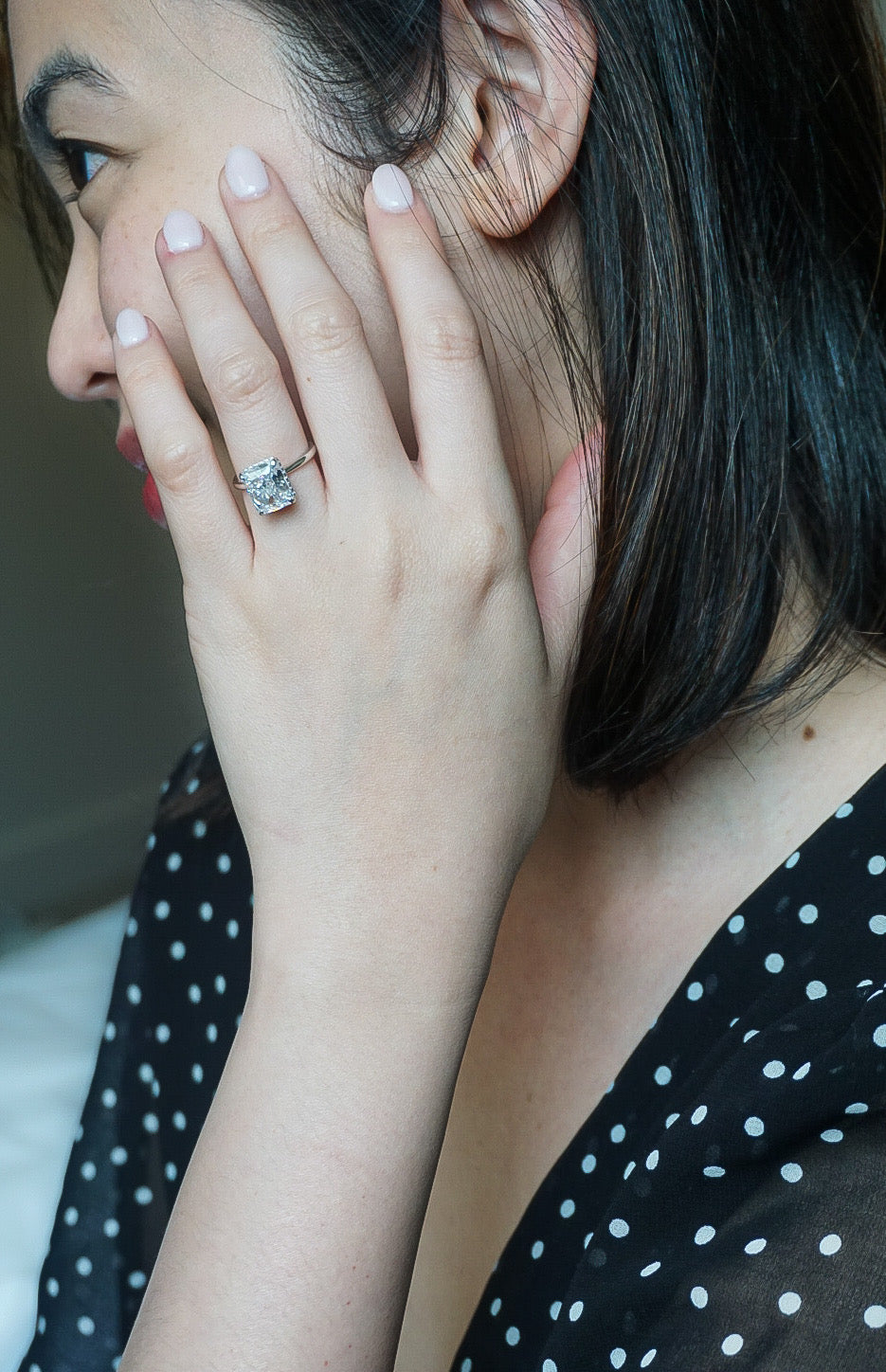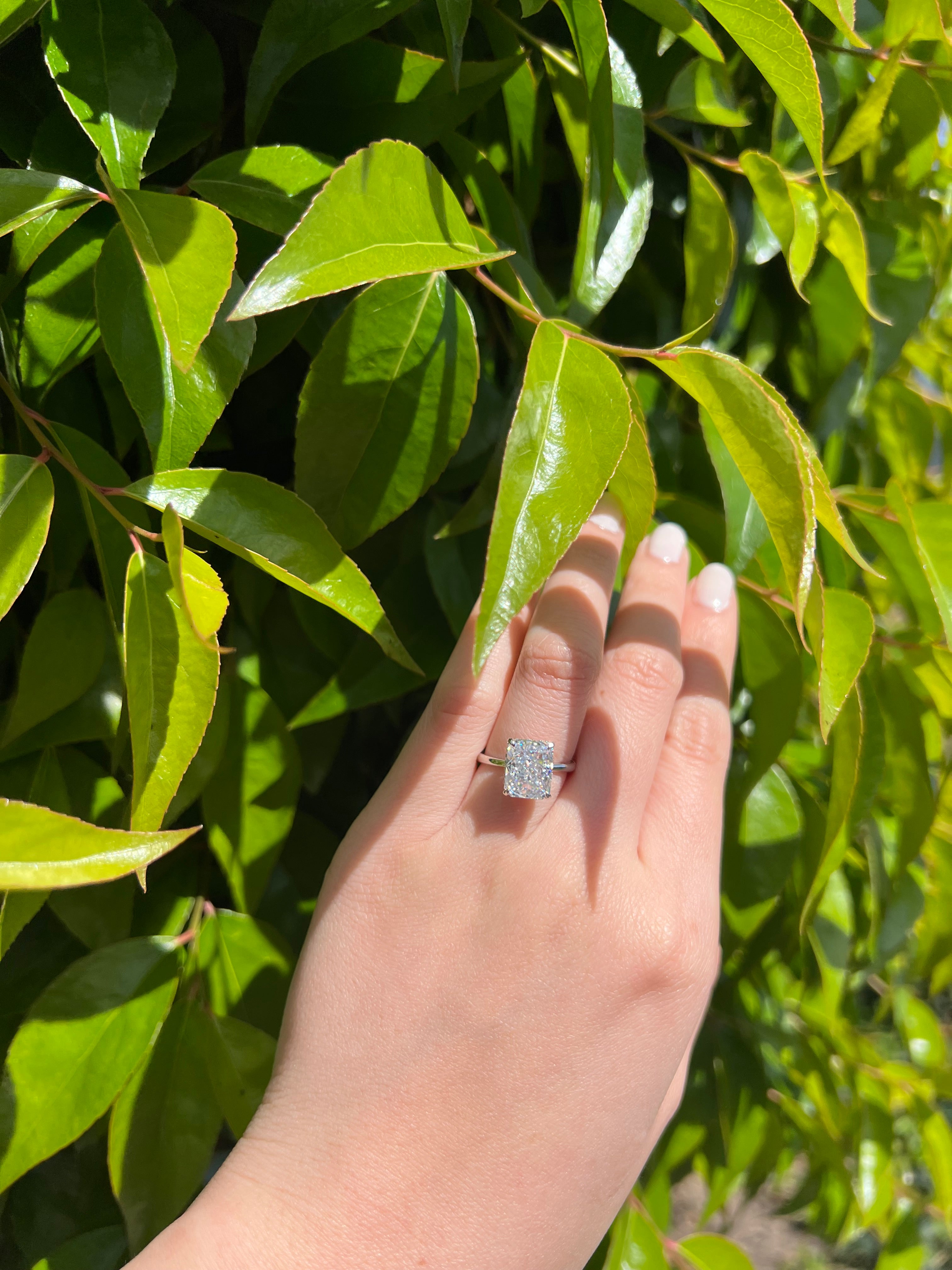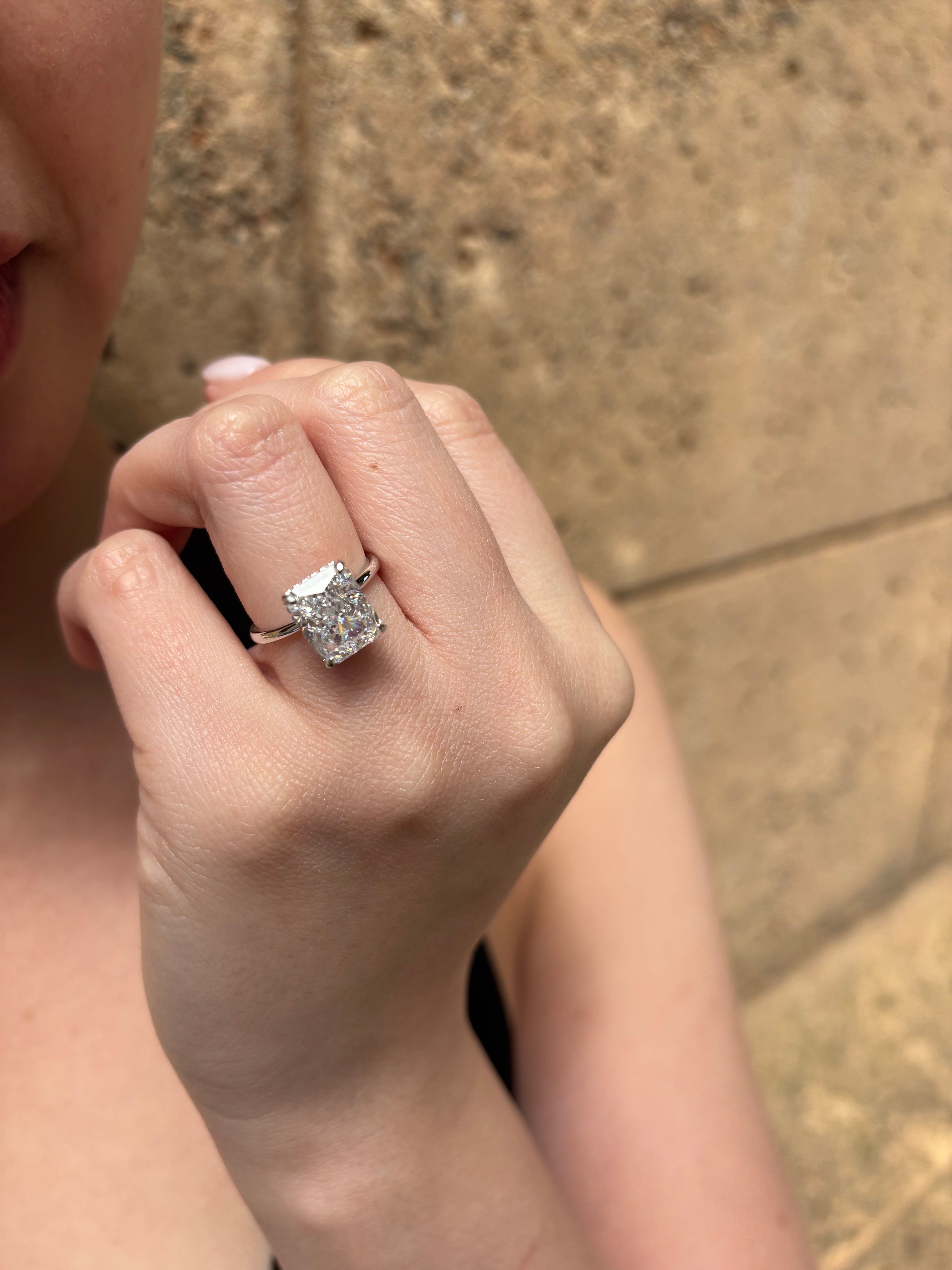 Our rings feature premium simulated diamonds and GRA-certified moissanite, chosen for their brilliance, clarity, and sparkle of a traditional mined diamond. Each stone is cut to catch the light beautifully, giving it a stunning shine.